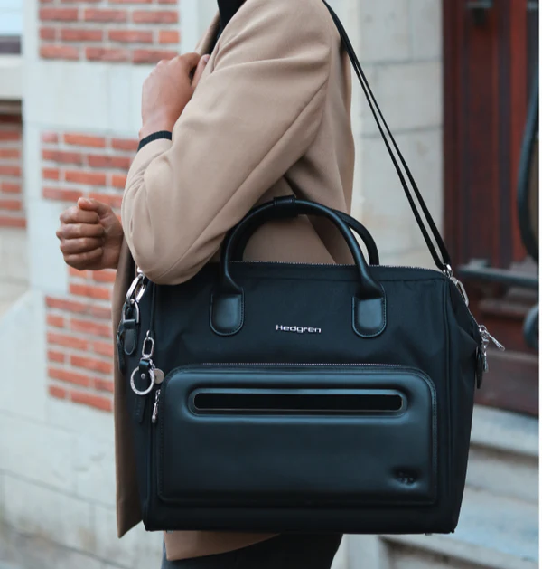 - Mikil skipulagning að innan, þar á meðal bólstrað fartölvu- og spjaldtölvuhólf, RFID-vasi, stór pappírshólf og bólstraðir vasar fyrir tæki.