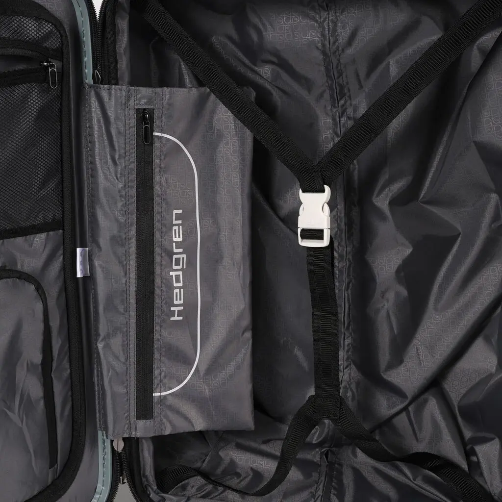Hedgren er í sjálfbærni verkefni, svo hulstrið er gert úr sterku, 50% endurunnu pólýkarbónati. Og við vitum að það er mikilvægt að geyma eigur þínar öruggar, svo við höfum TSA-lás og tvöfaldur spólu rennilás til að auka öryggi. Að lokum muntu elska hljóðlausu snúningshjólin, fjölbreytni handfanganna og stækkunar eiginleikann. 74 L