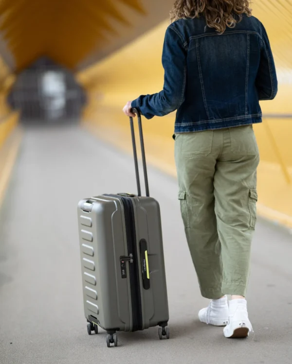 Grip M EXP er meðalstór innritunartaska sem getur stækkað með einni snöggri hreyfingu og er hinn fullkomni ferðafélagi. Ferðastíllinn snýst um auðvelda notkun, með fjórum handföngum sem auðvelda þér að lyfta þungri töskuni þinni upp í bíla eða af færiböndum. Hljóðlaus snúningshjól gera það auðvelt að hlaupa um flugvelli eða lestarstöðvar, TSA læsing og tvöfaldi spólu rennilásin halda hlutunum þínum öruggum. Þessi taska er búin úr endingargóðu endurunnu efni og lítur líka út fyrir að vera sjálfbær.
