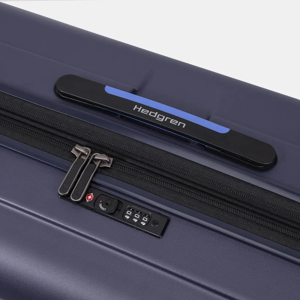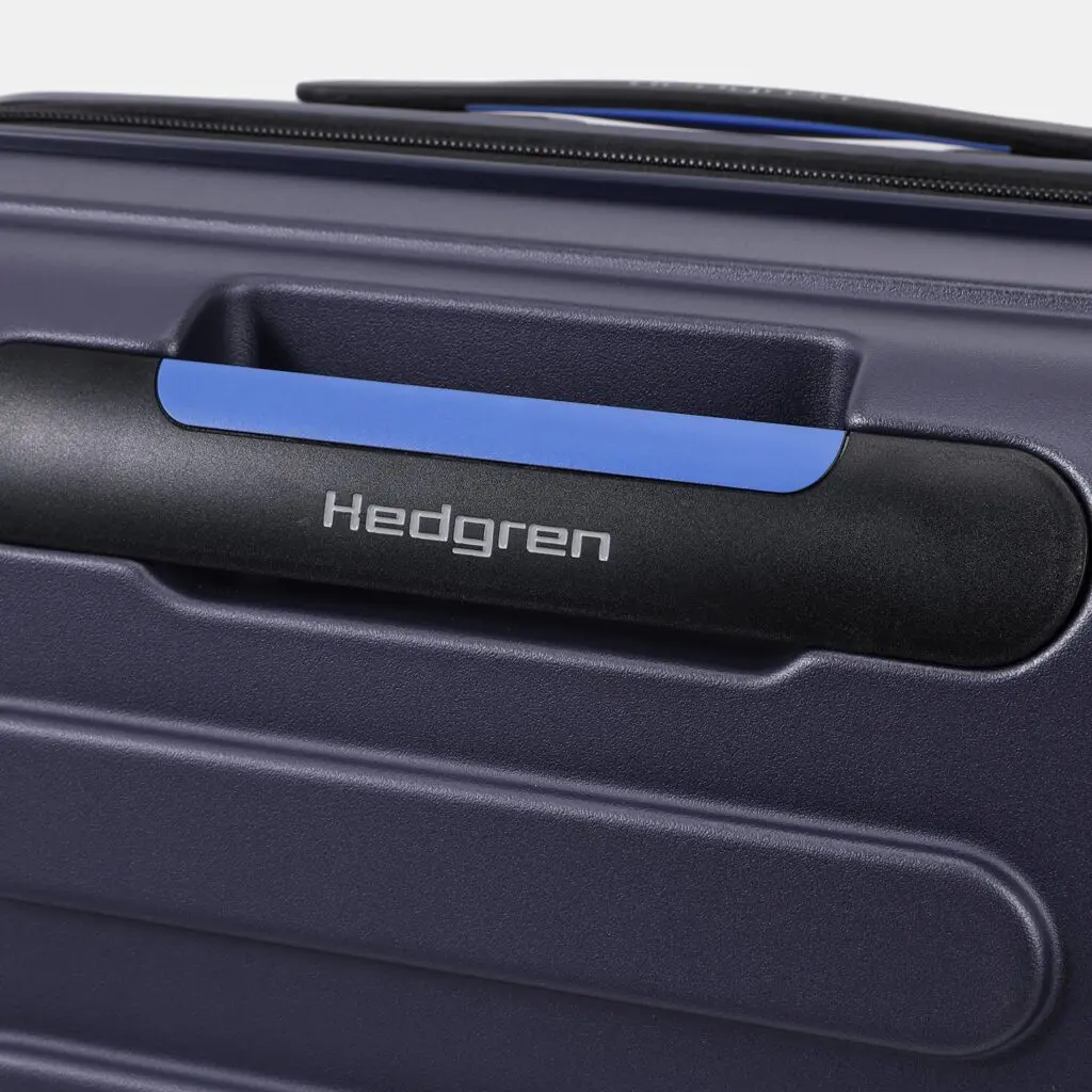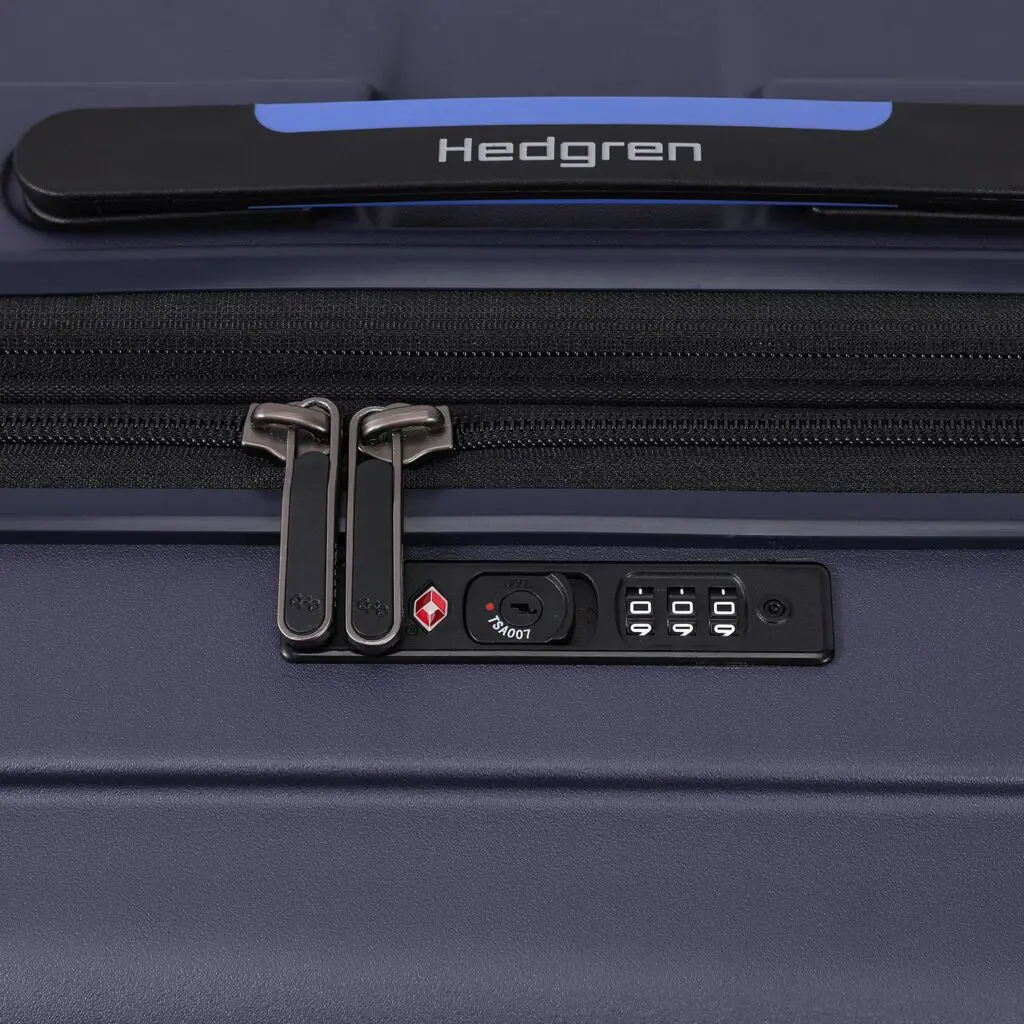 Hedgren er í sjálfbærni verkefni, svo hulstrið er gert úr sterku, 50% endurunnu pólýkarbónati. Og við vitum að það er mikilvægt að geyma eigur þínar öruggar, svo við höfum TSA-lás og tvöfaldur spólu rennilás til að auka öryggi. Að lokum muntu elska hljóðlausu snúningshjólin, fjölbreytni handfanganna og stækkunar eiginleikann. 74 L