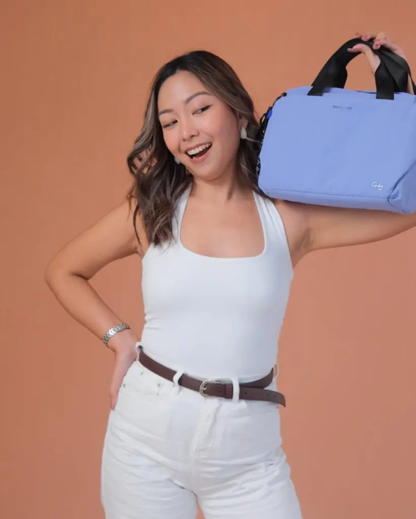 Kosho er í sömu stærð og hinar mest seldu crossover töskurnar okkar, en það kemur þér svolítið á óvart! Einmitt þegar þú heldur að töskurnar okkar geti ekki orðið virkari, bætum við snjöllu stillanlegu strengjahugtaki við hönnunina okkar. Þessir litaskilastrengir hjálpa til við að halda nauðsynjavörum þínum öruggum á meðan þú ferð í daginn. Mjúki ytri dúkurinn er vatnsfráhrindandi og að hluta til úr endurunnum flöskum, sem heldur umhverfisvitundinni þinni ánægðri.