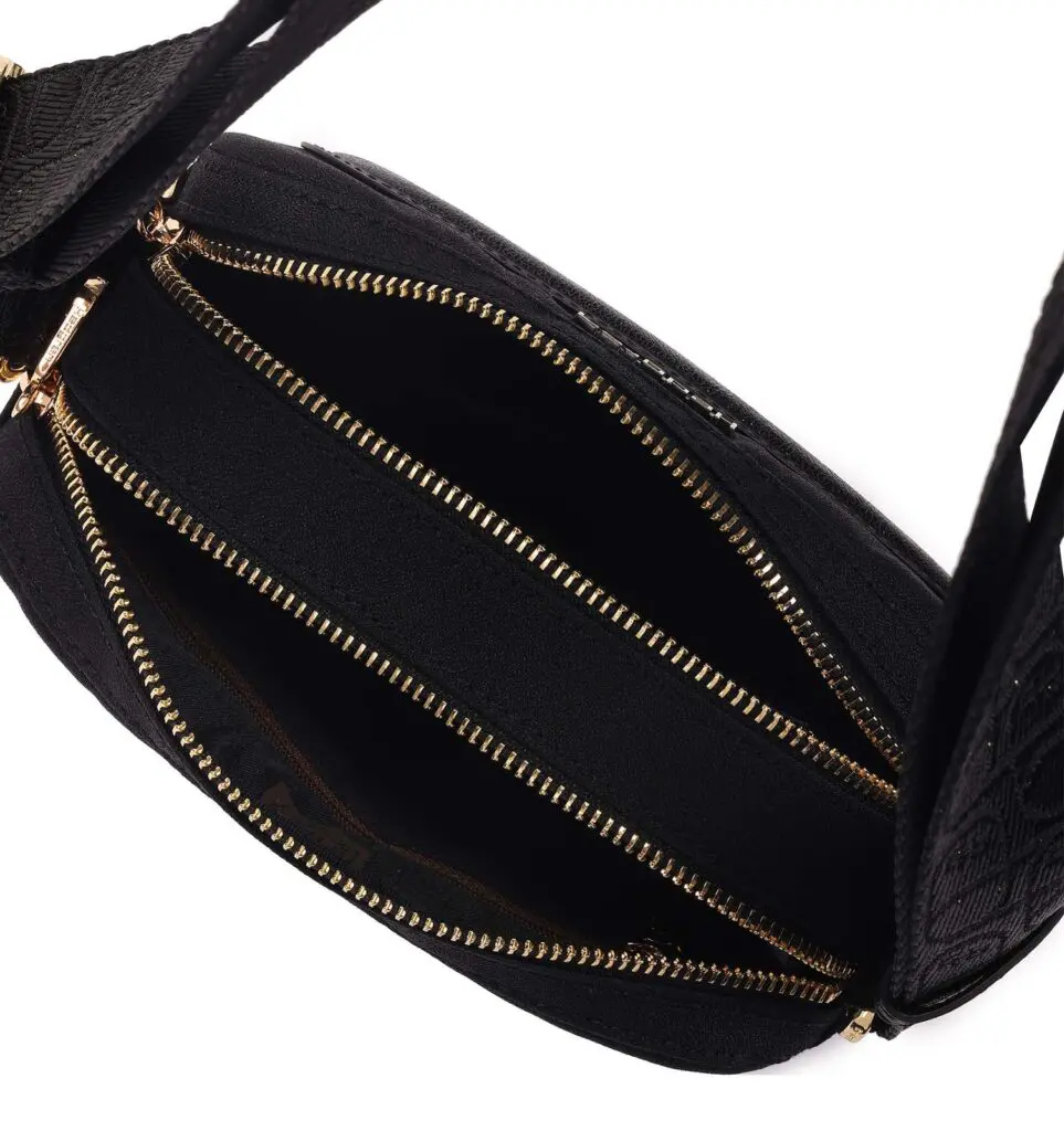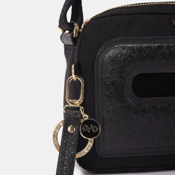 Það er festing að utan og innan fyrir fágaða lyklahengið og pokinn er með vatnsfráhrindandi húð svo að jafnvel leki getur ekki spillt deginum þínum. Breið ólin heldur þér vel á meðan litrík innri smáatriði fá þig til að brosa.