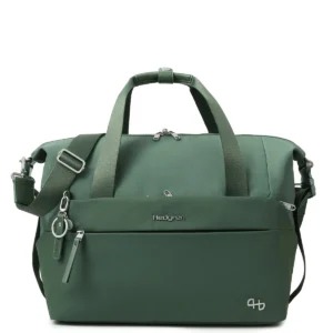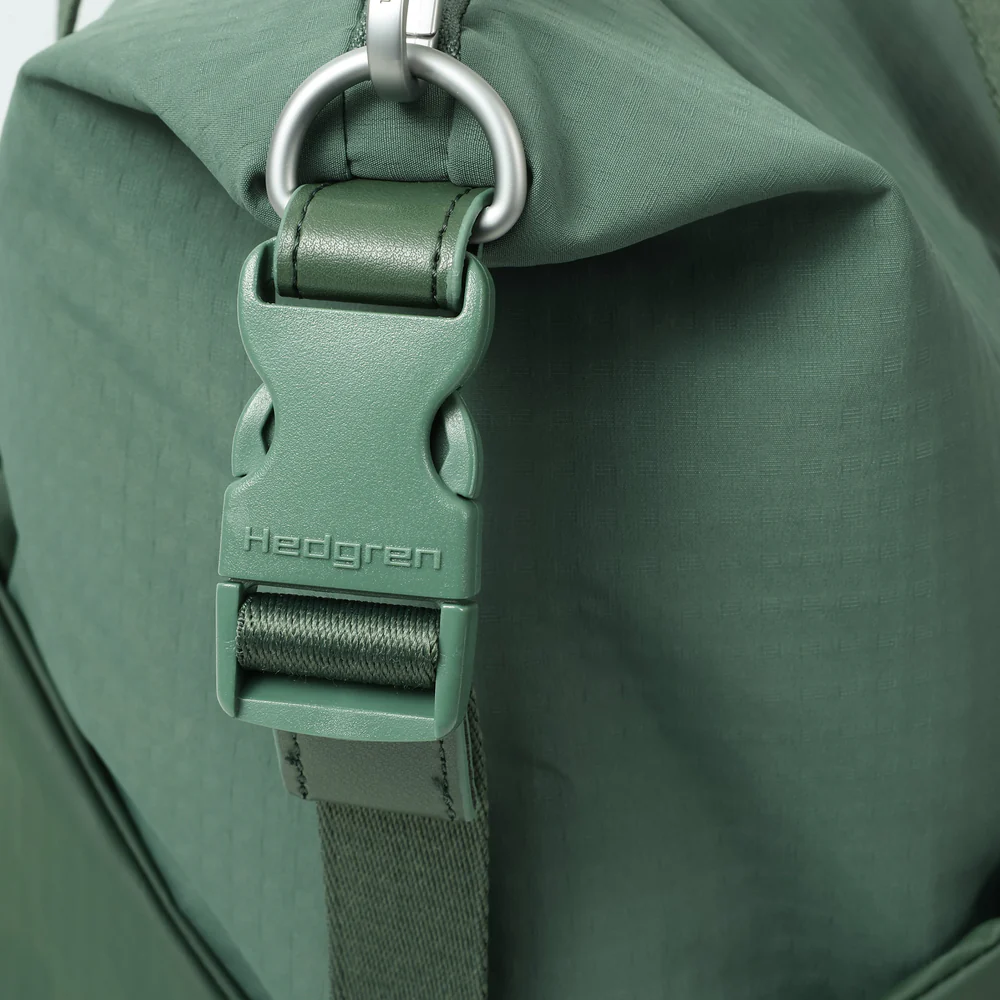 Ryoko S er fallega létt og fjölhæf ferðataska sem notar hliðarspennur og vefnaðarefni til að láta töskuna stækka eða þjappast saman, allt eftir því hversu mikinn farangur þú ert með. Læsanlegir rennilásar halda eigum þínum öruggum og sérstök hólf tryggja að allt sé skipulagt.Einnig eru fimm innri vasar, þar á meðal RFID-vasi til að halda kortaupplýsingum þínum öruggum.Og þar sem þessi Hedgren-taska er ætluð ferðalögum, þá er hún einnig með fræga snjallhulsuna okkar sem rennur yfir handfangið á ferðatöskunni til að auðvelda flutning á öllum farangrinum. Þessi hönnun er að hluta til úr endurunnum efnum sem eru dásamlega mjúk viðkomu og eru glæsilega sýnd á hagnýtan og fallegan hátt.
