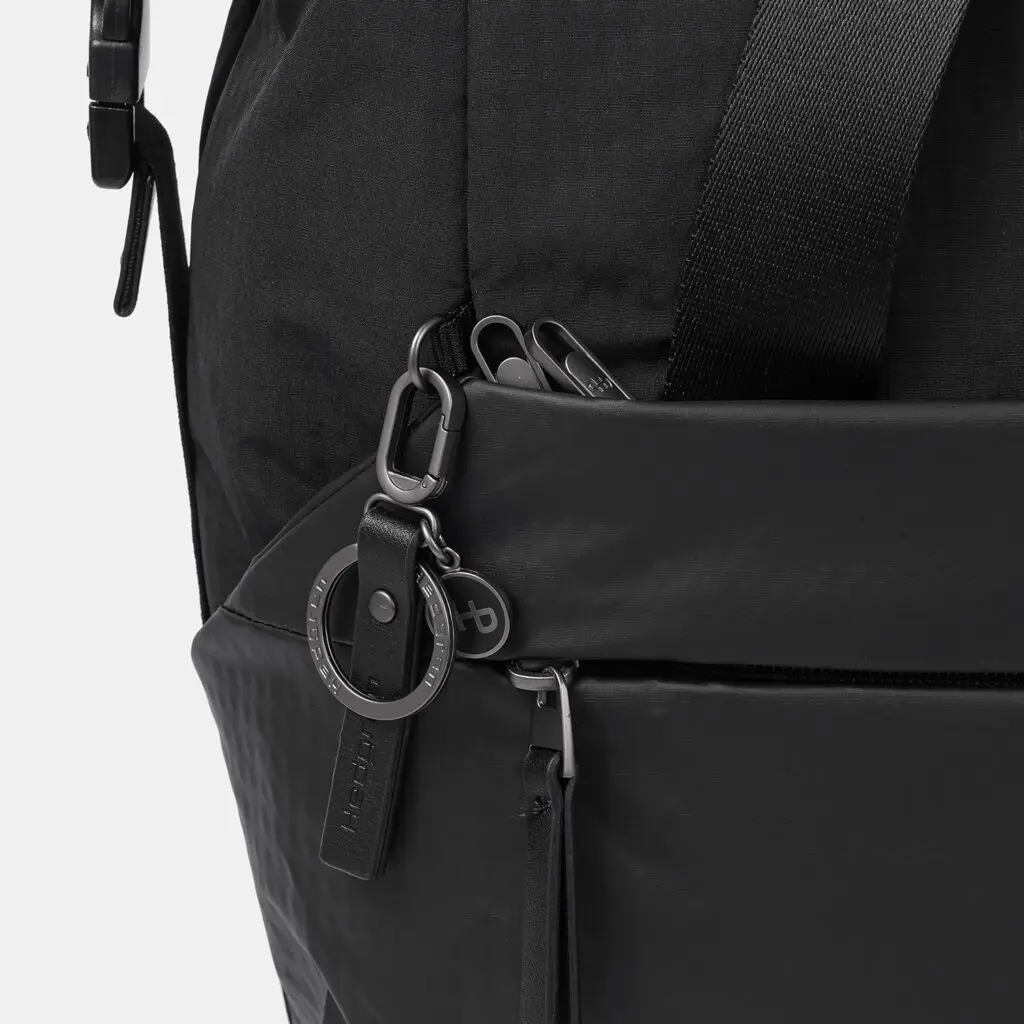 Ryoko S er fallega létt og fjölhæf ferðataska sem notar hliðarspennur og vefnaðarefni til að láta töskuna stækka eða þjappast saman, allt eftir því hversu mikinn farangur þú ert með. Læsanlegir rennilásar halda eigum þínum öruggum og sérstök hólf tryggja að allt sé skipulagt.Einnig eru fimm innri vasar, þar á meðal RFID-vasi til að halda kortaupplýsingum þínum öruggum.Og þar sem þessi Hedgren-taska er ætluð ferðalögum, þá er hún einnig með fræga snjallhulsuna okkar sem rennur yfir handfangið á ferðatöskunni til að auðvelda flutning á öllum farangrinum. Þessi hönnun er að hluta til úr endurunnum efnum sem eru dásamlega mjúk viðkomu og eru glæsilega sýnd á hagnýtan og fallegan hátt.