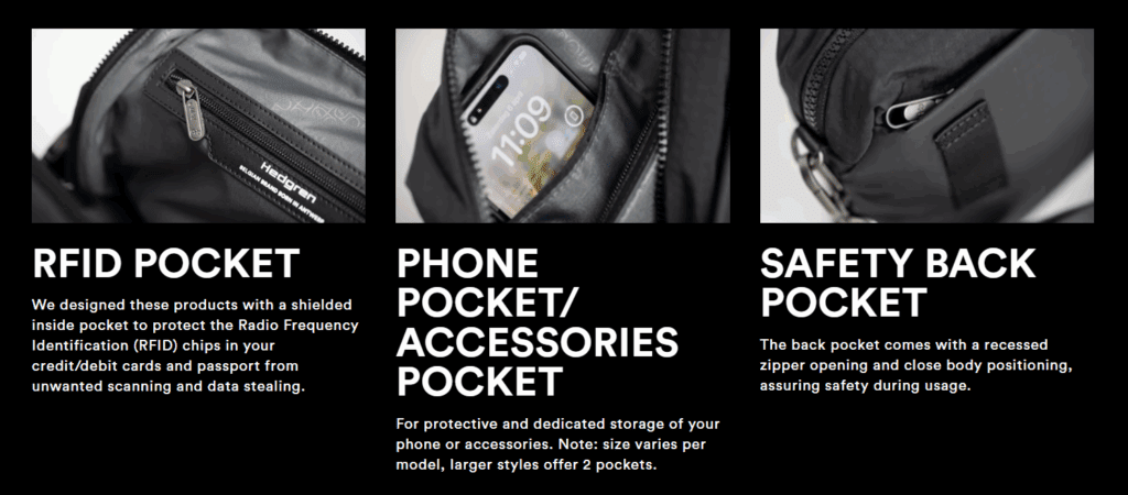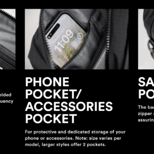 • Ergonomískt bakhlið með innbyggðum öryggisvasa og snjallhylki