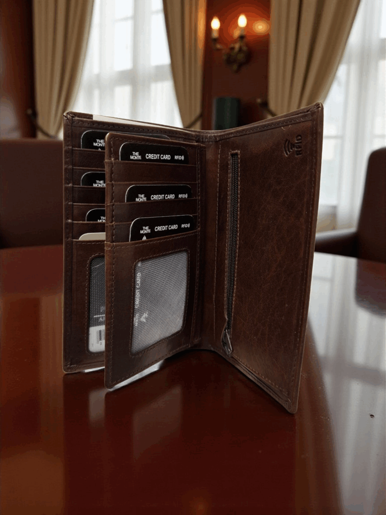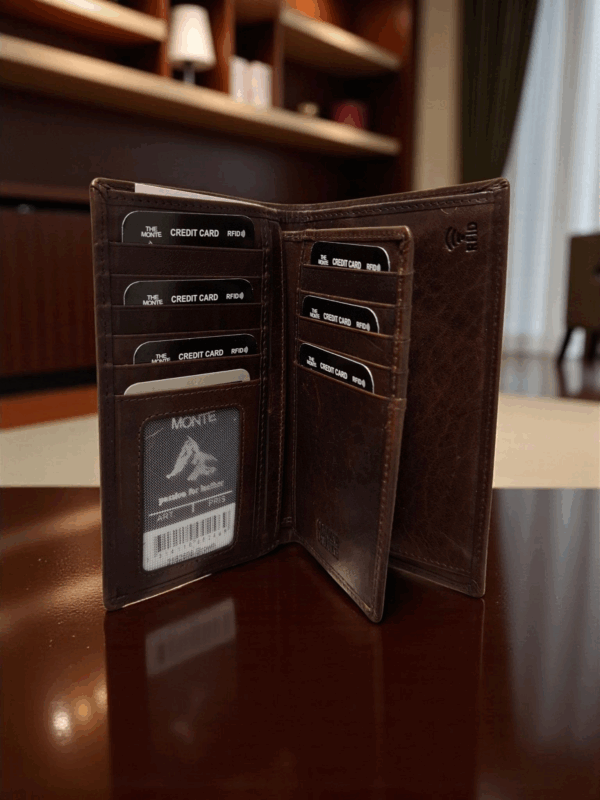 2 seðlahólf ,14 kortaraufar 2 skilrýkja gluggar og rendur vasi