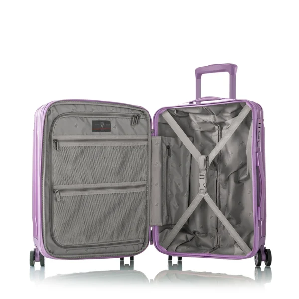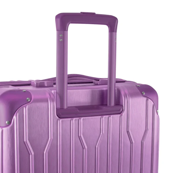 Úr léttu pólýkarbónat-samsettu efni með burstaðri málmáferð Hornhlífar úr málmi, Innra fóðrað með rennilás, spennum fyrir þjöppunaról og rennilásvösum