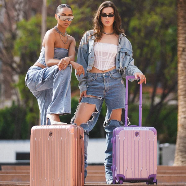 Úr léttu pólýkarbónat-samsettu efni með burstaðri málmáferð Hornhlífar úr málmi, Innra fóðrað með rennilás, spennum fyrir þjöppunaról og rennilásvösum