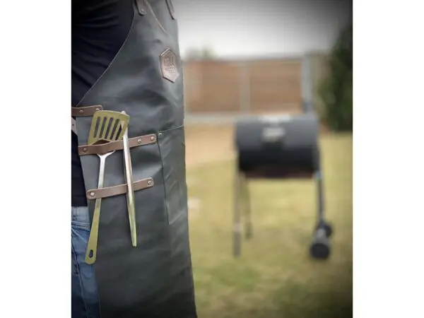 Með þessari svuntu frá vörumerkinu Hide & Stitches ljómar þú á bak við grillið! Þessi svunta er tilvalin vegna þess að framan á henni er vasi sem hægt að setja nokkra lausa hluti og ólar fyrir áhöld sem gott er að hafa við höndina.Hægt er að stilla svuntuna um hálsinn og mitti eftir þínum þörfum. Er þessi nú þegar á óskalistanum þínum?