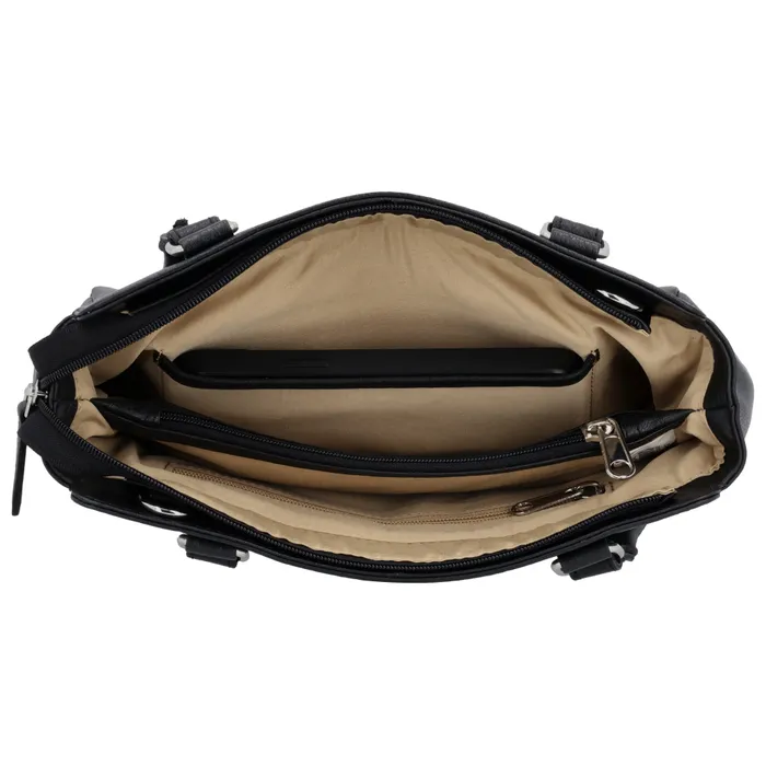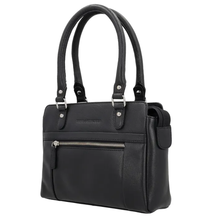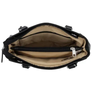 Hide & Stitches hand- og axlartaskan úr Mississippi-línunni er fullkomin blanda af stíl og virkni. Taskan er úr 100% úrvalsleðri og geislar af lúxus og endingu. Með sterkum handföngum og aftakanlegri, stillanlegri axlaról geturðu borið hana eins og þú vilt. Rúmgott aðalhólf býður upp á nóg pláss fyrir nauðsynjar þínar, en auka vasar með rennilásum veita skipulagða geymslu. Tilvalin til daglegrar notkunar, hvort sem þú ert á leið í vinnuna, á fund eða í dagsferð.