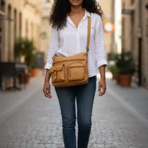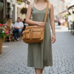 Ertu að leita að axlartösku sem er bæði stílhrein og hagnýt? Þessi leðurtaska frá Hide & Stitches er einmitt það sem þú þarft! Hágæða leðrið gefur töskunni lúxuslegt útlit, en rúmgott aðalhólf og ýmsar geymsluvasar tryggja hagnýta skipulagningu.