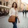 Ertu að leita að axlartösku sem er bæði stílhrein og hagnýt? Þessi leðurtaska frá Hide & Stitches er einmitt það sem þú þarft! Hágæða leðrið gefur töskunni lúxuslegt útlit, en rúmgott aðalhólf og ýmsar geymsluvasar tryggja hagnýta skipulagningu.
