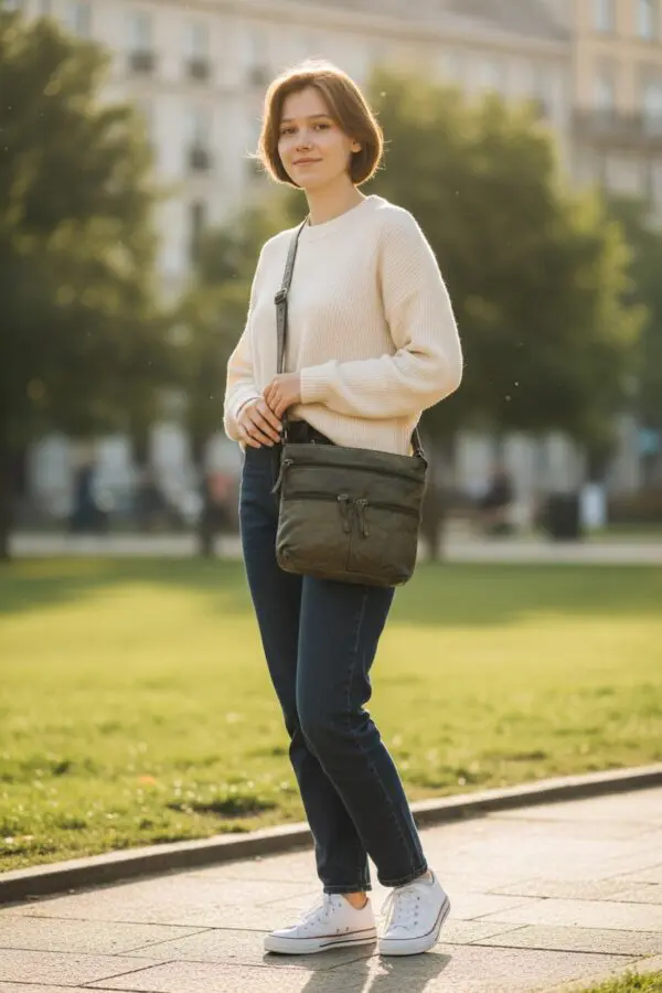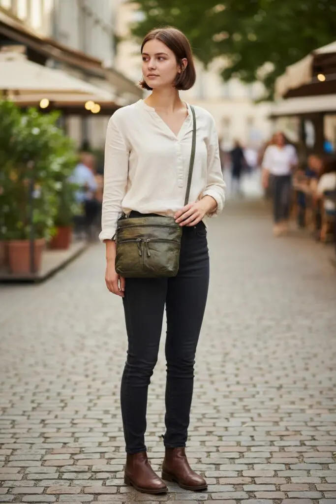Hide & Stitches Paint Rock axlartaska Olivu Græn