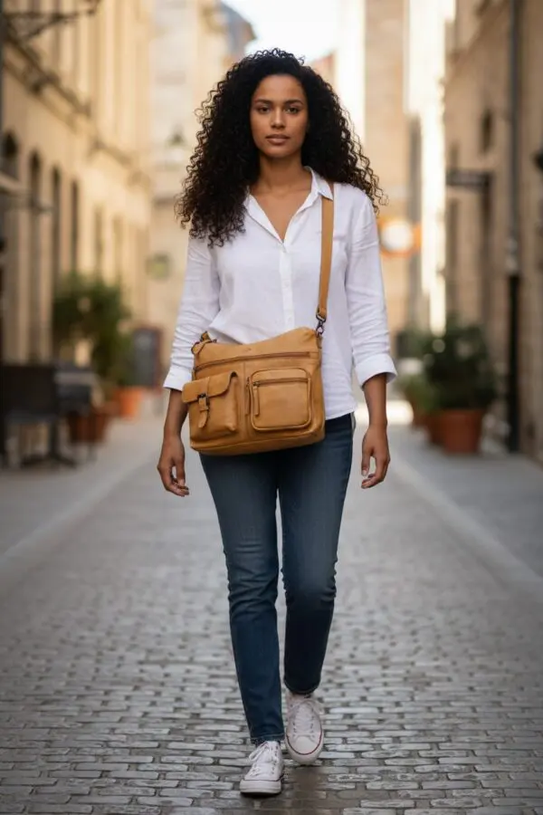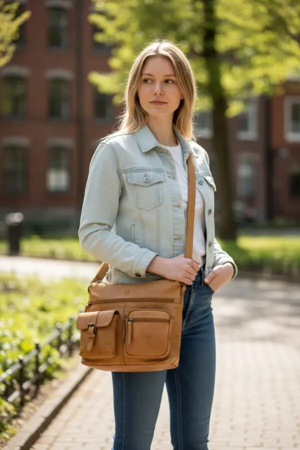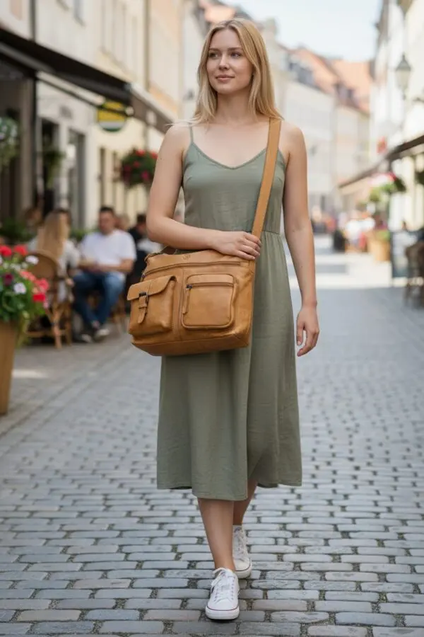 Ertu að leita að axlartösku sem er bæði stílhrein og hagnýt? Þessi leðurtaska frá Hide & Stitches er einmitt það sem þú þarft! Hágæða leðrið gefur töskunni lúxuslegt útlit, en rúmgott aðalhólf og ýmsar geymsluvasar tryggja hagnýta skipulagningu.