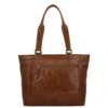 Hide & Stitches innkaupataskan úr Westland línunni er stílhrein og hagnýt taska, fullkomin til daglegrar notkunar. Taskan er úr 100% leðri og geislar af lúxus og endingu. Rúmgott aðalhólf með rennilás býður upp á gott pláss fyrir allar nauðsynjar þínar, en auka vasar með rennilás veita örugga og skipulagða geymslu. Þökk sé sterkum axlarólum geturðu borið töskuna þægilega yfir öxlina. Tilvalin fyrir vinnu, verslunarferðir eða dagsferð!