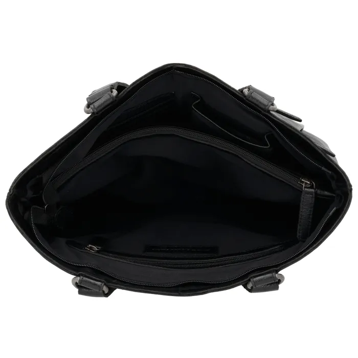 Hide & Stitches innkaupataskan úr Westland línunni er stílhrein og hagnýt taska, fullkomin til daglegrar notkunar. Taskan er úr 100% leðri og geislar af gæðum og tímaleysi. Rúmgott aðalhólfið lokast með rennilás og býður upp á nægilegt pláss fyrir allar nauðsynjar. Aukahólf með rennilás veita örugga og skipulagða geymslu. Þökk sé sterkum axlarólum geturðu borið töskuna þægilega yfir öxlina. Tilvalin fyrir vinnu, innkaup eða dagsferð!