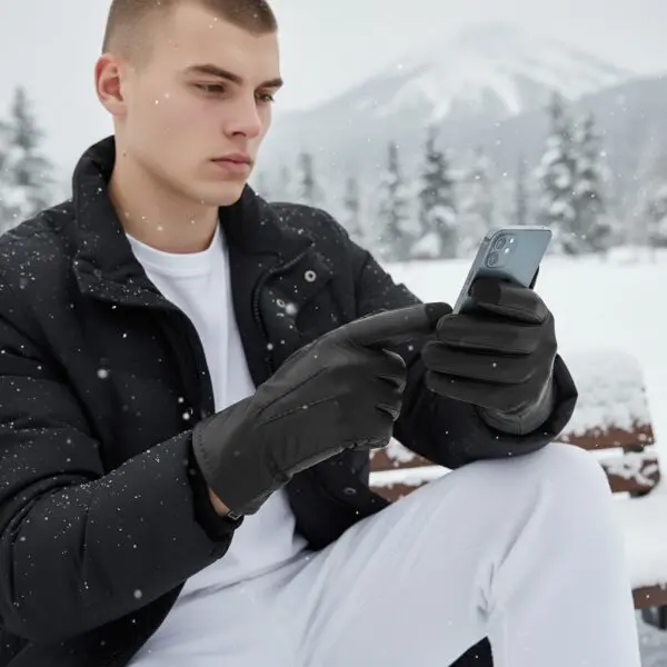 HK Herra Leðurhanskar Lamb virka á símaskjái.Stærð 9
