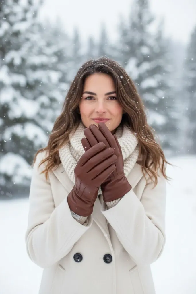 HK Leðurhanskar virka á símaskjái. Coníaks Brúnir Stærð 7.5