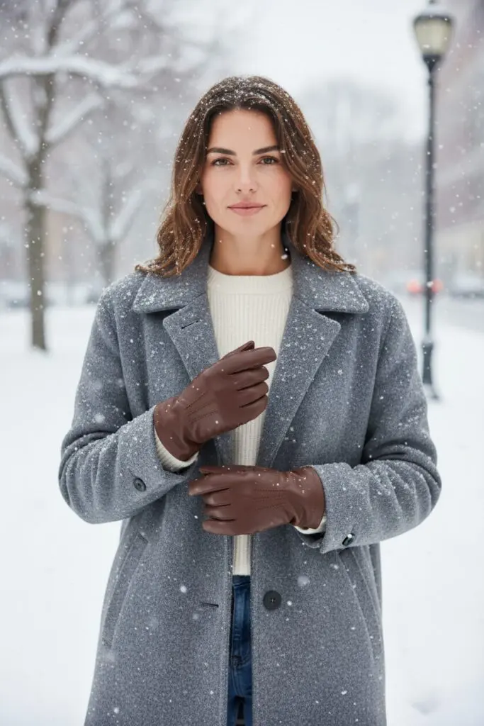 HK Leðurhanskar virka á símaskjái. Coníaks Brúnir Stærð 7