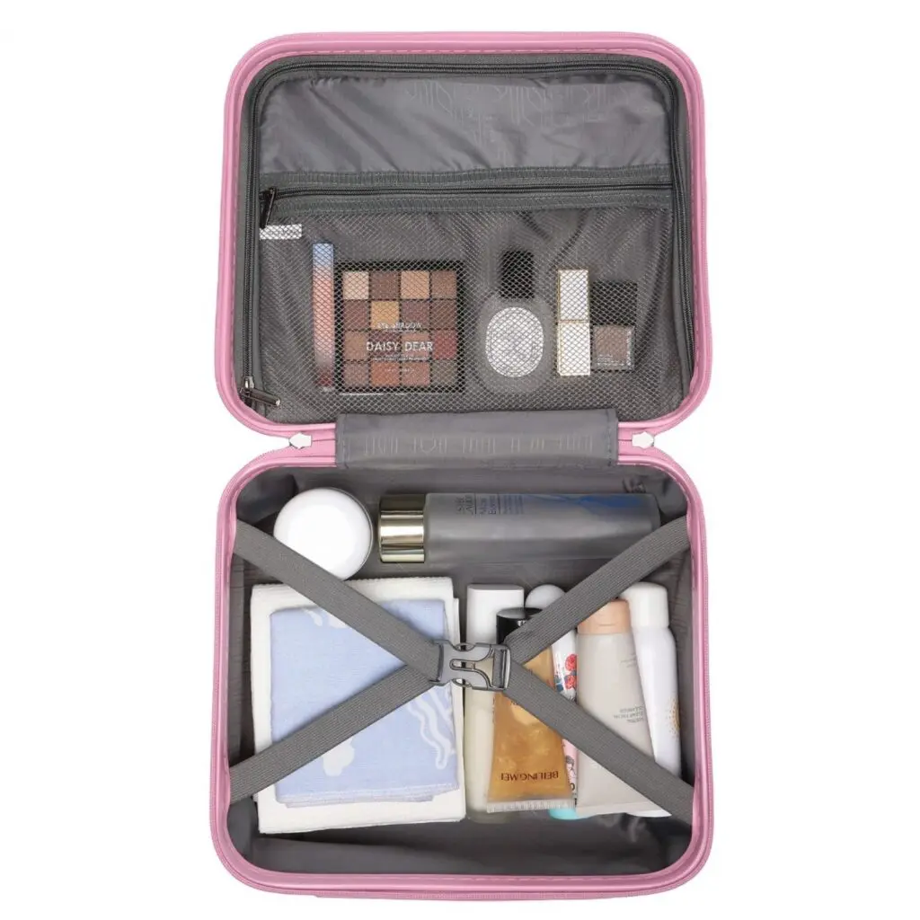 Í aðalhólfinu eru nælonsylgjubönd sem geta tryggt innihaldið á annarri hliðinni, hin hliðin er fest með rennilás og er með netvasa með rennilás til að auðvelda skipulagða pökkun.