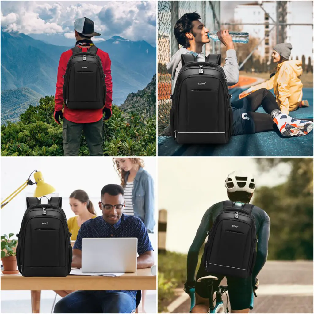 KONO Svartur með festingu fyrir ferðatösku.Og USB hleðslu port.Og 13.5″ fartölvu hólf og spjaldtölfu hólf. Lás fylgir.