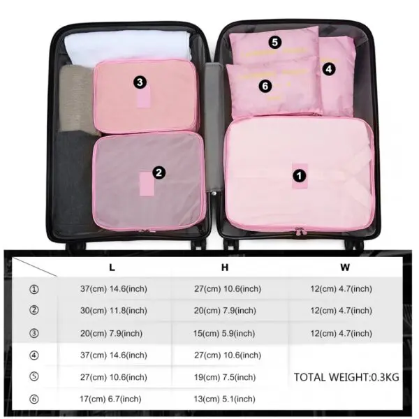 KONO Ferða skipulags sett / 6 stærðir.Bleikt