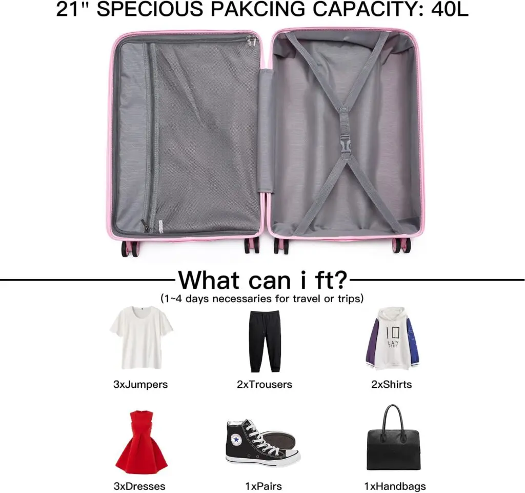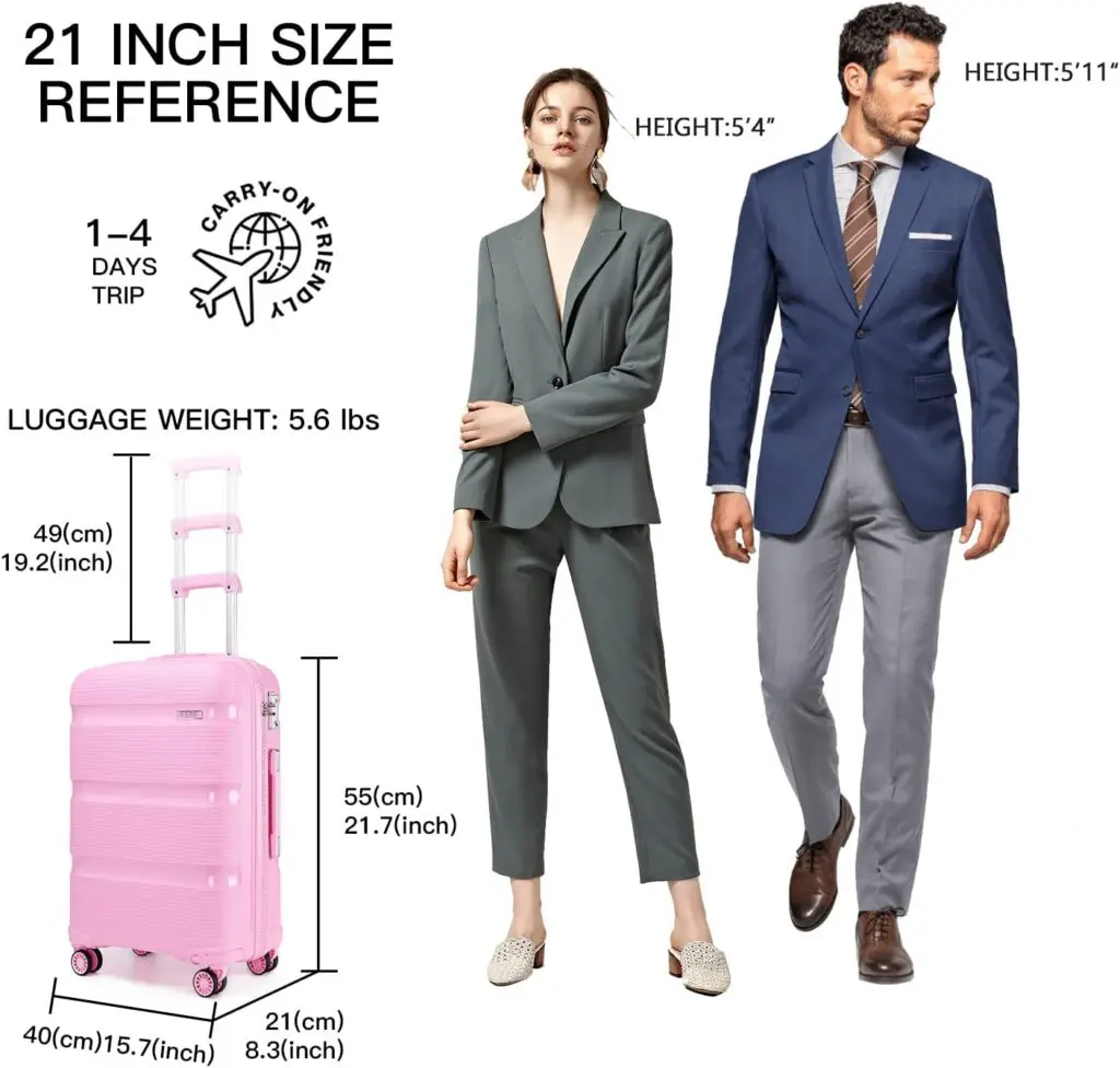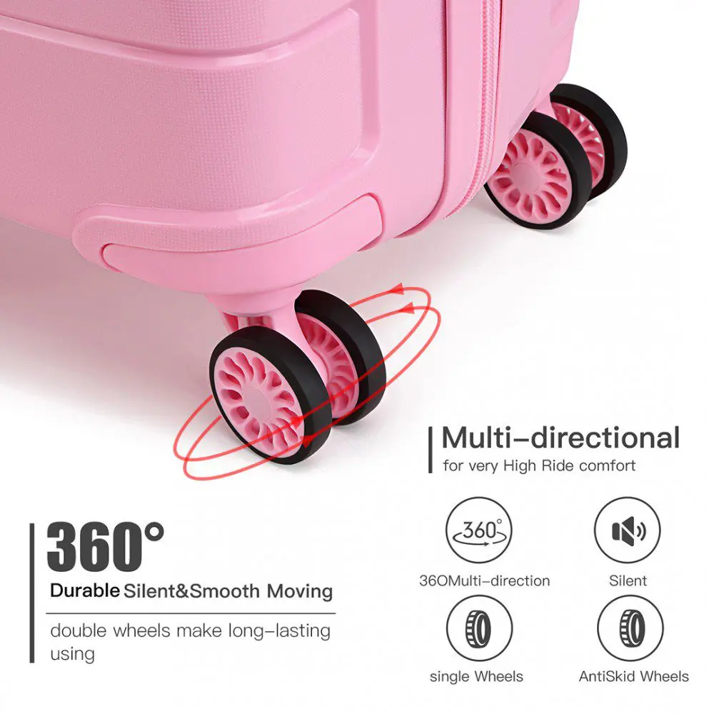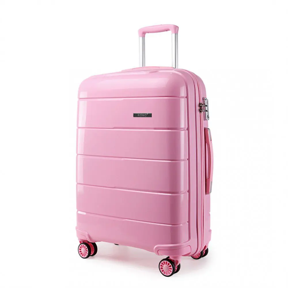 KONO Ferðatöskur Bleikar Hágæða pólýprópýlen fyrir sterka og endingargóða ferðatösku