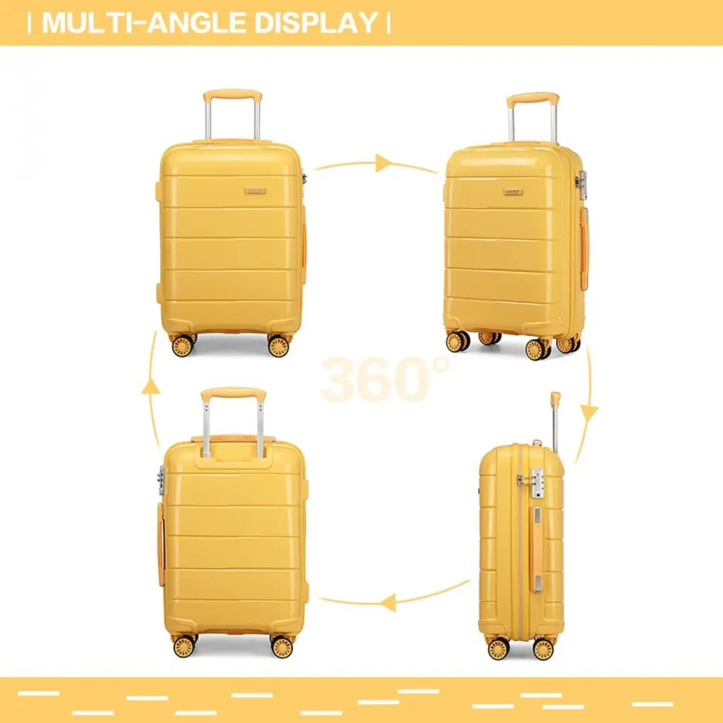 Hágæða pólýprópýlen fyrir sterka og endingargóða ferðatösku Fjögur 360° snúningshjól dreifa þyngd ferðatöskunnar jafnt og tryggja auðvelda för um annasama flugvelli eða lestarstöðvar. Útdraganlegt, auðvelt í gripi sjónaukahandfang með tveimur hæðarstillingum