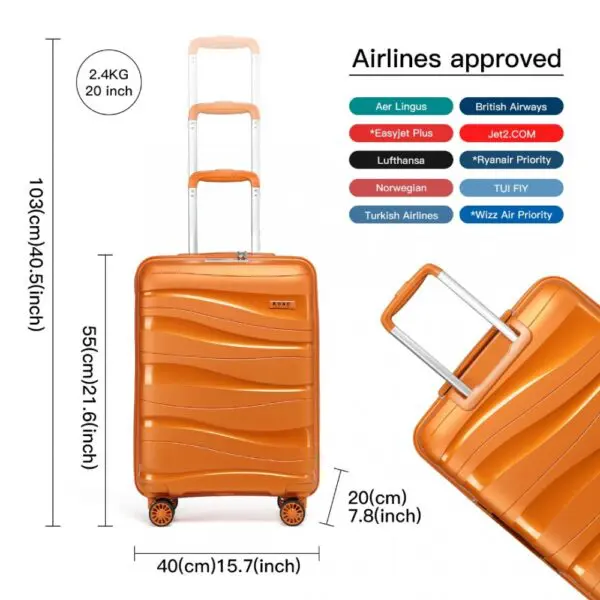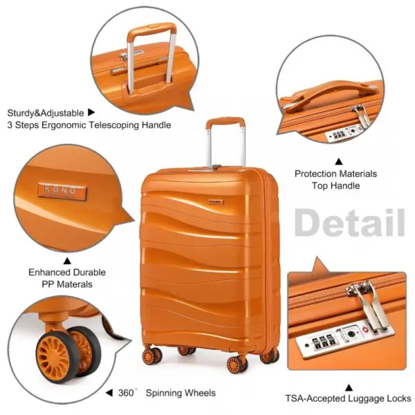 Pólýprópýlen (PP) er aðallega hentugt fyrir flugvörur,hefur eiginleika fallvarnar, sprengiþols og mikillar hörku. sem getur skapast strax eftir árekstur til að vernda farangurs. Nægt pláss fyrir allar ferðaþarfir þínar frá löngu helgarfríi eða til lengri ferðar
