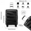Þetta ferðatöskusett er úr úrvals pólýprópýlenefni. Pólýprópýlen (PP) er aðallega hentugt fyrir flugvörur,hefur eiginleika fallvarnar, sprengiþols og mikillar hörku. sem getur skapast strax eftir árekstur til að vernda farangurs. Nægt pláss fyrir allar ferðaþarfir þínar frá löngu helgarfríi eða til lengri ferðar