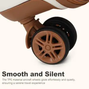 Þægileg hönnun: Fjögur 360° snúningshjól og þriggja þrepa sjónaukahandfang gera það auðvelt að draga hlaðna ferðatöskuna þína. Ferðataskan rúllar mjúklega þannig að þú getur notið þess að ferðast um annasama flugvelli eða ysið á annasömu götuhorni. Innanrýmið er með pakkningarólum til að halda fötunum þínum á sínum stað, auk renniláss millivasa fyrir allt sem þú vilt hafa aðskilið og netvasa fyrir skjölin þín.