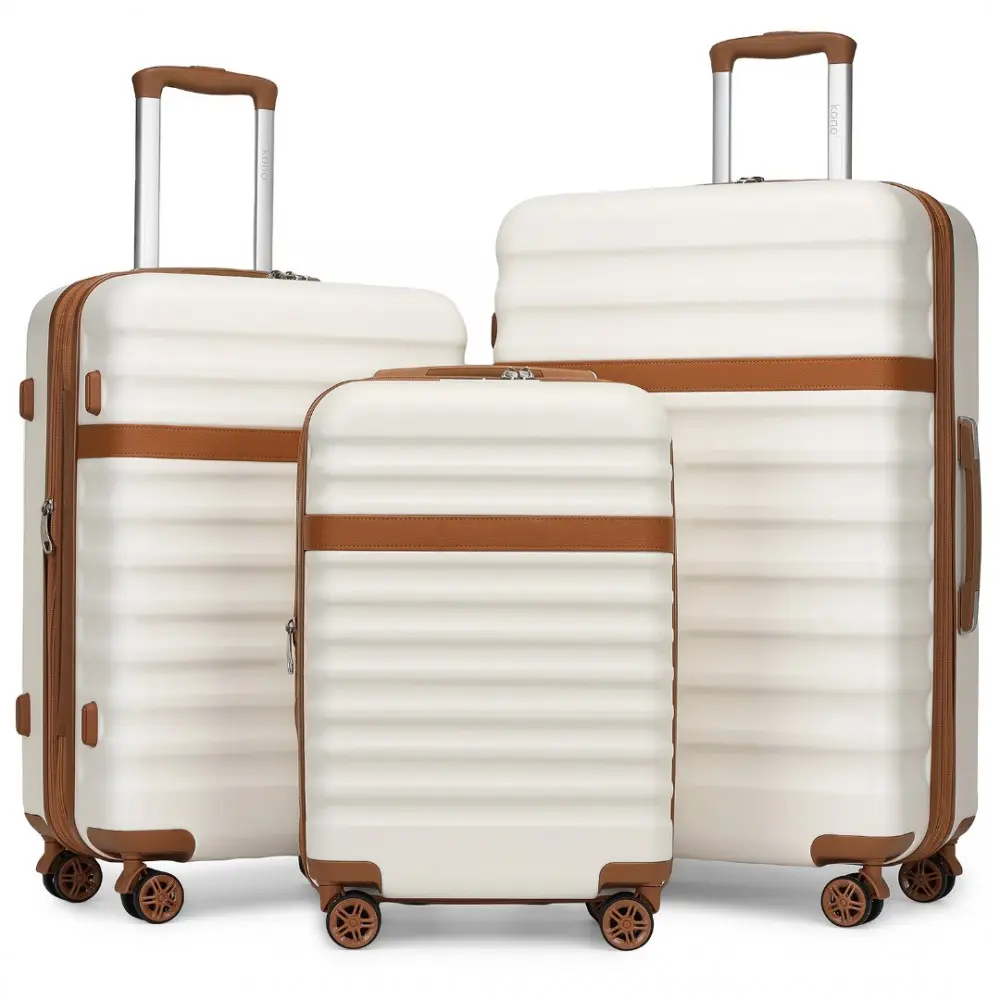 KONO Stækkanleg ferðataska 28" Cream and Brown 104 L