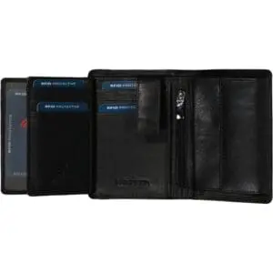 Leður Korta og Seðlaveski með RFID Vörn Svart
