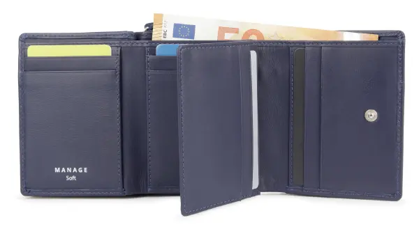 Veski með 10 kortaraufar, RFID vörn öryggishólf, útsýnisvasi, seðlavasi, 2 seðlahólf og myntvasi.