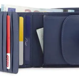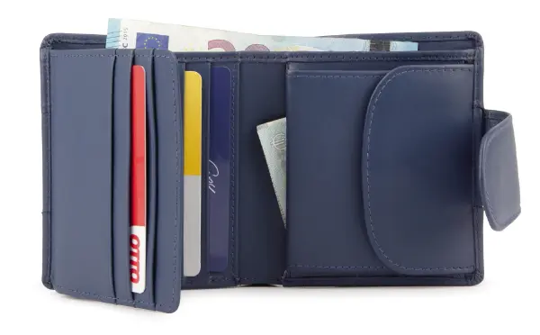 Veski með 6 kortaraufar, RFID vörn , útsýnisvasi, seðlavasi, 2 seðlahólf og myntvasi.