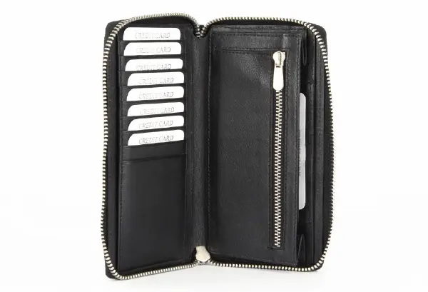 Veski með 12 kortaraufar, RFID vörn , seðlavasi, seðlahólf og myntvasi.