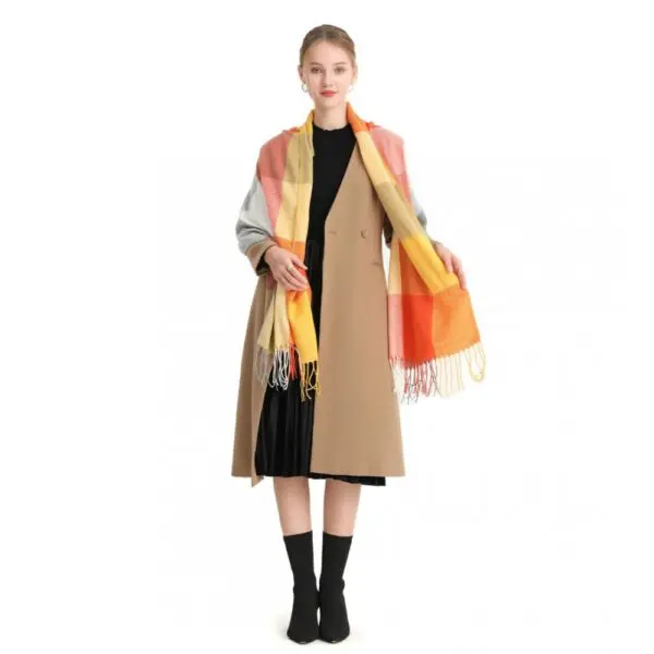 Þessi trefil er mjög langur og fjölhæfur. Það er hægt að drapera, vefja eða hnýta á mismunandi vegu, sem gerir þér kleift að búa til mismunandi útlit eftir klæðnaði þínum og skapi.