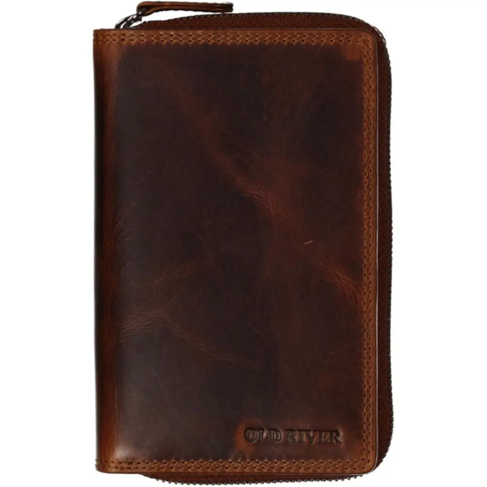 Leður Seðlaveski Brúnt RFID Vörn OLD RIVER