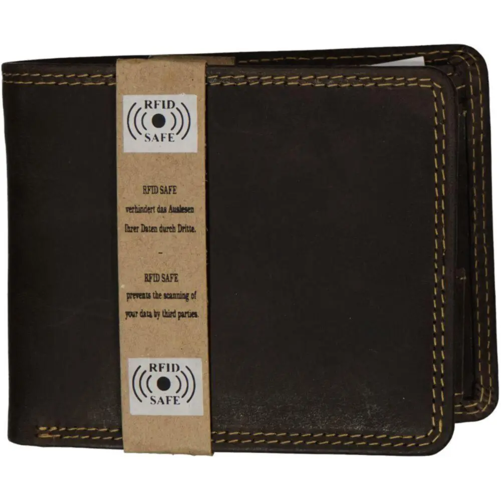 Leður Seðlaveski Brúnt RFID Vörn