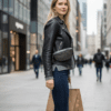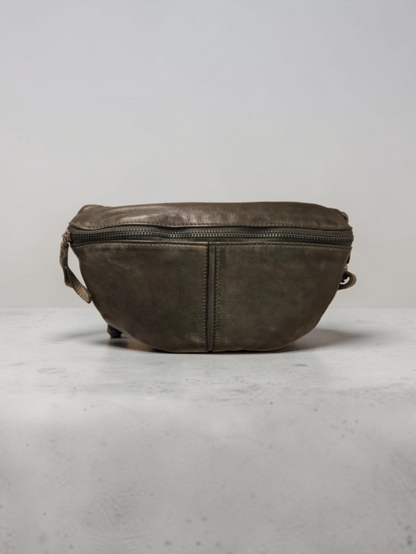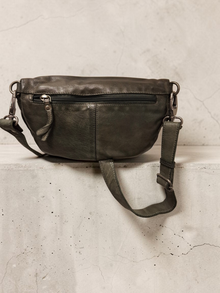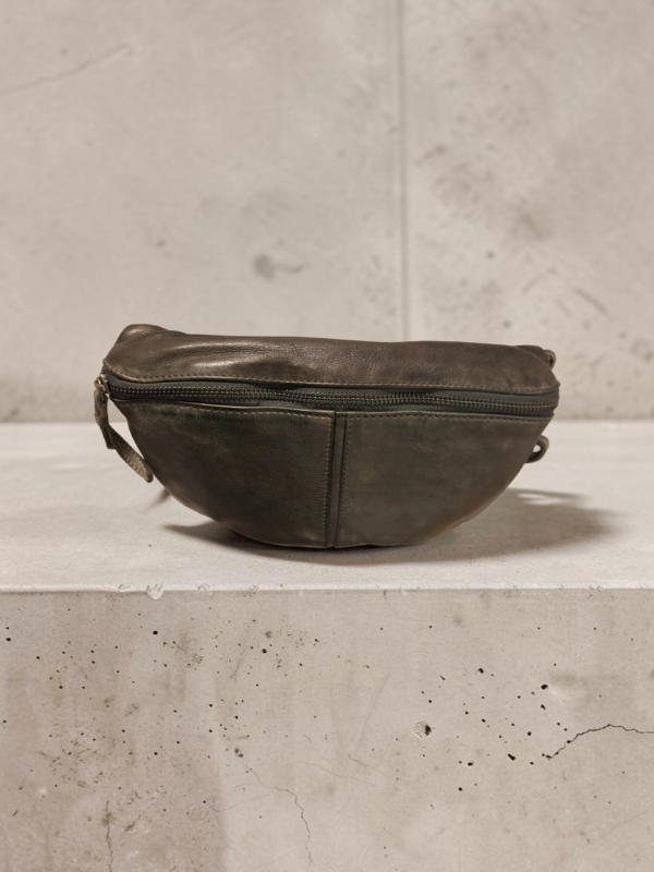 Manage leðurtaska með mitti eða axlarvef með rennilás að aftan, rennilás- og stingvasa að innan, stillanleg ól,