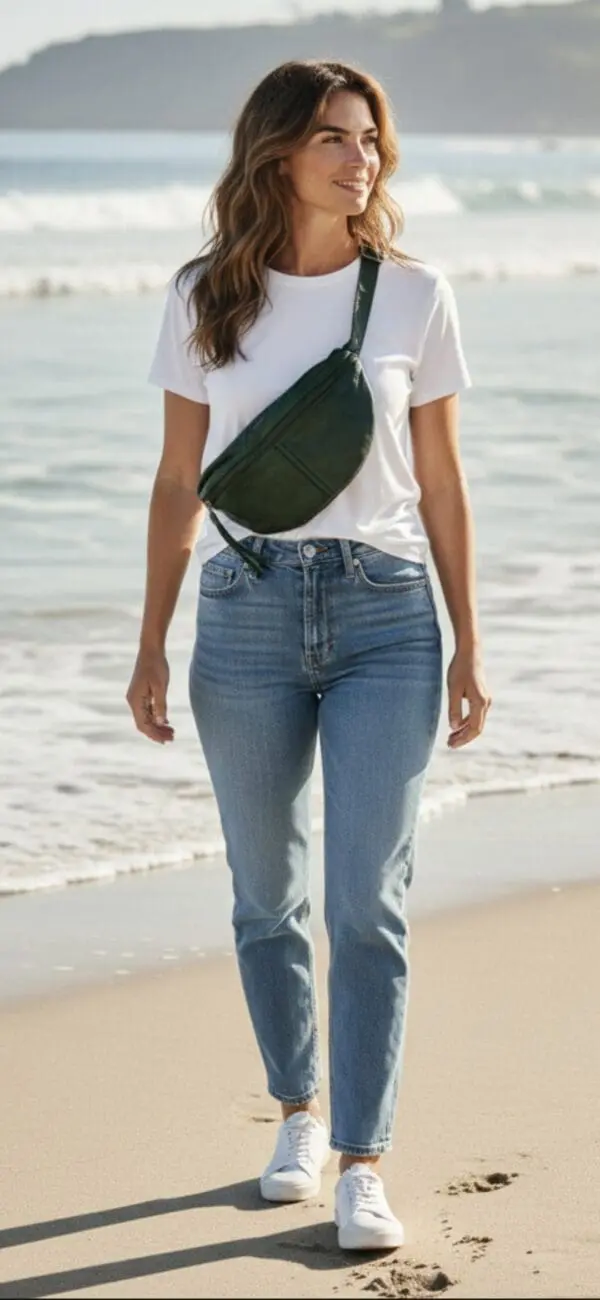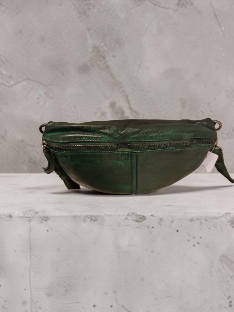 Manage leðurtaska með mitti eða axlarvef með rennilás að aftan, rennilás- og stingvasa að innan, stillanleg ól,