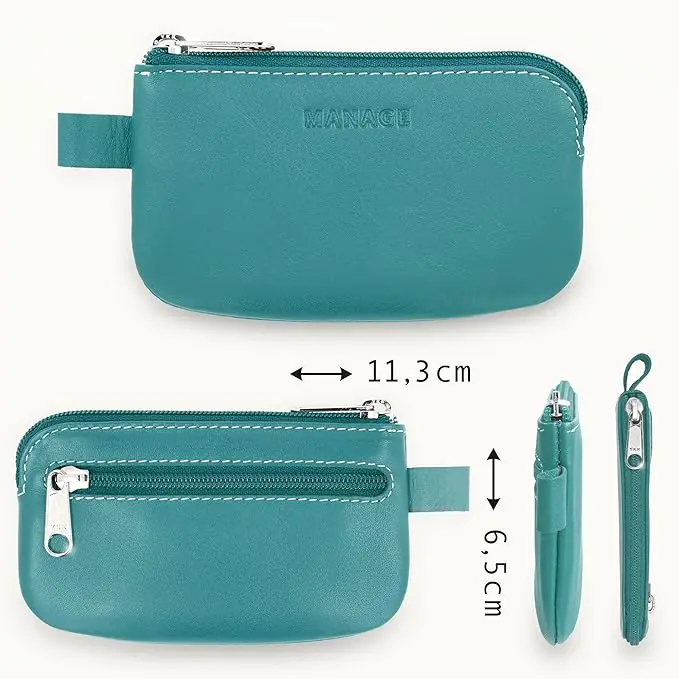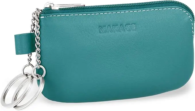 MANAGE Leðurlyklaveski með mynthólf og lyklakippu fyrir karla og konur .