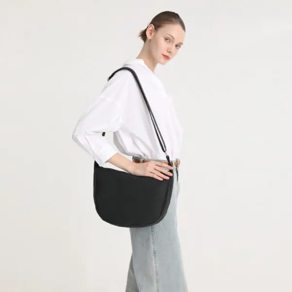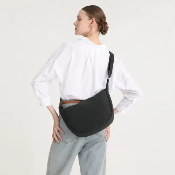 Þessi mínimalíska þverbakstaska er unnin úr endingargóðu, vatnsheldu næloni með mjúku, ofurléttu yfirbragði, sem gerir hana fullkomna fyrir daglega notkun.