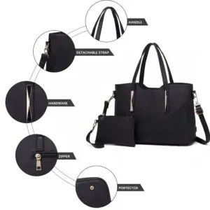 Handtaska kemur með litlu tösku með úlnliðsól.