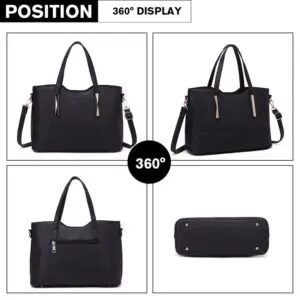 Stórt renniláshólf með tveimur opnum vösum og rennilásvasa.