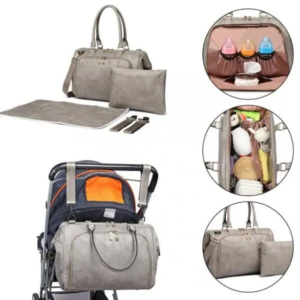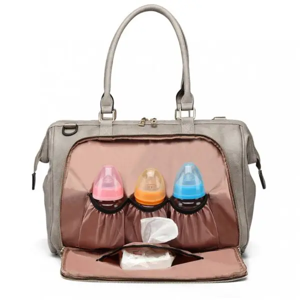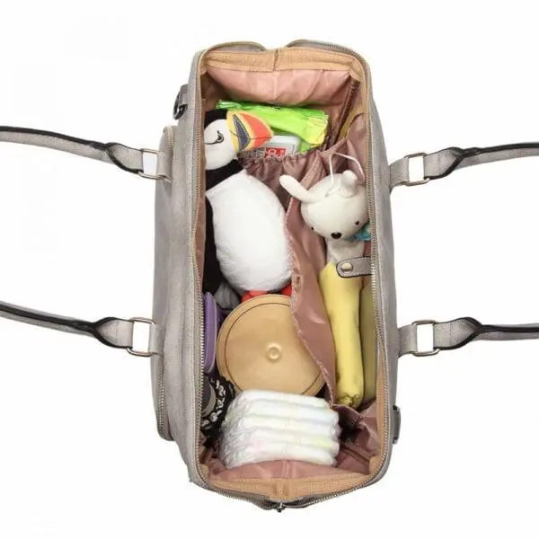 Skiftimotta hólf fyrir bleiur og þurkur.Mikið af opnu rými fyrir öll önnur nauðsynleg atriði: mjólkurduft, mat, drykk, leikföng, föt o.fl.