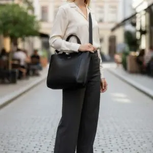Rúmgott innra rými býður upp á gott pláss fyrir allt sem þú þarft, svo sem snjallsíma, veski, spjaldtölvu og snyrtivörur. Með tveimur sterkum handföngum og auka, stillanlegri axlaról er hægt að bera töskuna sveigjanlega – klassískt í hendi eða þægilega yfir öxlina. Fínleg merkisupplýsingar og nákvæmlega útfærðir saumar undirstrika einstakan karakter þessarar gerðar. „miss1 by Sarah Kern“ taskan er stílhreinn fylgihlutur sem heillar með gæðum, þægindum og tímalausri hönnun – tilvalin fyrir konur sem meta tískuvitund og hagnýtan glæsileika.