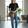 Rendur vasi að aftan, 1 rendur vasi ,2 síma vasar,aðalhólf tvískift með rendu hólfi ásamt langri axlaról