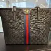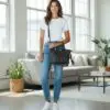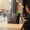 ModaTaska Svört með rendu millihólfi og langri axlaról.