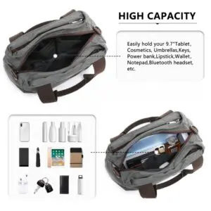 Nógu stór fyrir vatnsflösku,regnhlíf og stafrænu tækin þín (spjaldtölvu,Kindle, rafmagnsbanka og farsíma).